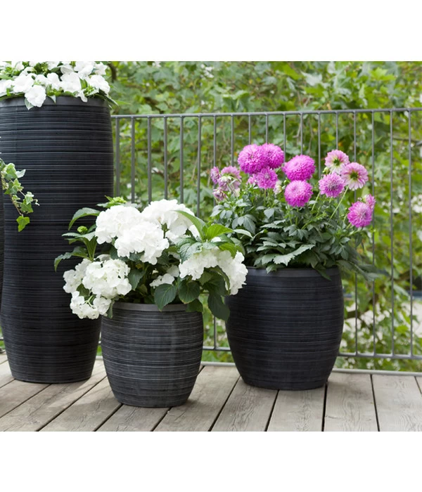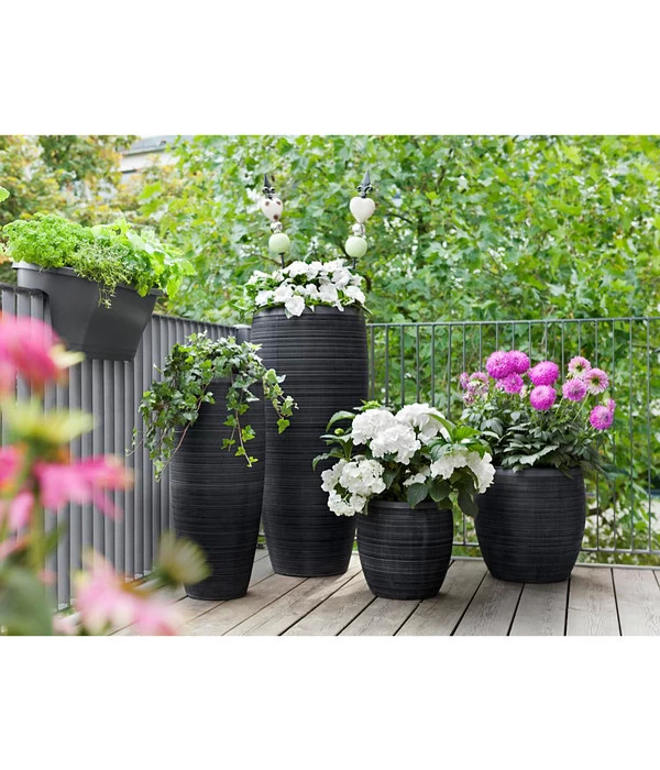 Jeder Innenarchitekt weiß: neben stilvollen Möbeln spielen auch die Accessoires eine nicht unbedeutende Rolle für die Gesamtwirkung eines Raumes. Und das gilt nicht mehr nur für das Innen-Interieur, sondern in gleichem Maße auch für den Gartenbereich. Und neben schmückenden Deko-Objekten wirken vor allem Pflanzen und Ihre Gefäße absolut stil-prägend auf der Terrasse, dem Balkon und im Eingangsbereich des Hauses. Wenn Sie ein Liebhaber der klassischen-eleganten Richtung sind, dann ist dieser Dehner Polystone-Topf Singapur in Markenqualität genau der richtige für Sie. Von der sanft geschwungenen Form über die interessante Rillenstruktur bis zu dem dunklen Grauton ist dieser Dehner Polystone-Topf Singapur in Markenqualität ein Highlight unter den modernen Töpfen. Denn er begeistert nicht nur mit seiner erlesenen Optik, sondern auch mit seiner Funktionalität.
