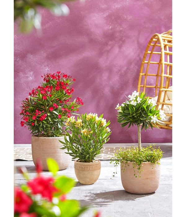 Die Dehner Markenqualität garantiert die Langlebigkeit des Terrakotta Produkts. Wenn es auch kaum Jahrtausende überdauern wird wie römische Amphoren, so werden Sie doch über lange Zeit Freude an diesem Accessoire haben, dank des robusten, UV- und witterungsbeständigen Materials. Die edle Patina, die der Blumentopf mit der Zeit ansetzt, verleiht ihm, nebst der grazil herausgearbeiteten Ornamente, ein besonders mediterranes Flair. Wer auf stilvolle Blumenarrangements Wert legt, bepflanzt den Terrakotta-Topf Neapel mit seiner liebsten Blumenpracht. Wie wäre es mit Hortensien, Oleander oder Hibiskus? Bestellen Sie die passenden Pflanzen gleich dazu!