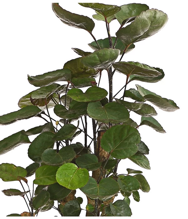Der Name Fiederaralie ist für diese hübsche Grünpflanze etwas verwirrend, denn anders, als ihre nahen Verwandten, trägt diese Art keine gefiederten Blätter. Vielmehr besitzt die Glänzende Fiederaralie ‚Fabian‘ auffällig glänzend, runde Bätter. Das exotische Aussehen verleiht der Glänzenden Fiederaralie vor allem der dicke, raue Stamm, an dem ihre runden, nach außen gewölbten Blätter empor wachsen. Wie ihre Geschwister, stammt auch die Zuchtsorte ‚Fabian‘ ursprünglich aus den tropischen Gebieten rund um den Pazifischen Inseln. Soll sie also Dschungel-Feeling ins Wohnzimmer bringen, muss man ihr ein entsprechendes Plätzchen suchen.