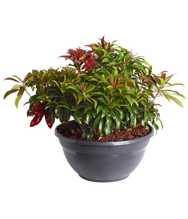 Bevorzugen Sie klares Weiß oder verspieltes Rosarot? Hier können Sie Ihren Favoriten wählen: Denn das hübsche Schattenglöckchen in der dekorativen Pflanzschale gibt es sowohl als weiß wie auch als rosa blühende Variante. Beide Sorten eignen sich perfekt zur Gartendekoration. Sie werden es live erleben, wenn Sie die Japanische Lavendelheide bei sich zu Hause haben. Die Sorte ‘Debutante‘ trägt das ganze Jahr ein frischgrünes Laubkleid, während sich die Japanische Lavendelheide ‘Katsura‘ für einen Blattaustrieb in kräftigem Weinrot entschieden hat, wodurch Sie in Genuss eines abwechslungsreichen Farbspiels kommen. Doch es geht noch weiter. Das Schattenglöckchen ‘Debutante‘ bevorzugt Rahmweiß als Blütenfarbe, ‘Katsura‘ setzt auf die Wirkung von zarten Rosétönen, die tatsächlich besonders schön zu dem bunten Laub passen. Einig sind sich beide Sorten über die Form der zierlichen Glockenblüten und die frühe Blütezeit im März/April. Und natürlich, dass es angemessen ist, das Blattkleid auch im Winter zu tragen. Stellen Sie gleich die dekorative Wirkung der beiden auf die Probe – wir sind sicher, dass Sie ein großer Fan dieser Schattenglöckchen werden!