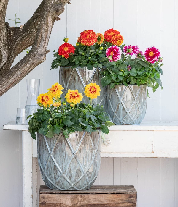 Die Fülle an Blütenblättern, die sich perfekt aneinander reihen, und der gleichmäßige kompakte Wuchs machen diese Besonderheiten als Beet- und Balkonpflanzen so attraktiv. In einem dekorativen Topf wird sie dann bis in den Herbst hinein auf der Terrasse oder dem Balkon einen beeindruckenden Blickfang bilden. Aber auch im Gartenbeet oder auf einem Grab ist die Dahlie ein bezaubernder Sommerschmuck. Da sie sich hervorragend als Schnittblume eignet, können Sie sich immer wieder einen Dahlienstrauß ins Zimmer holen – mit dem schönen Nebeneffekt: Je öfter Sie schneiden, desto üppiger wird die Dahlie blühen!